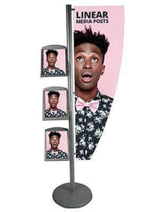 A robust, handy and very versatile information and promotion incorporating 3 literature holders. The post holds a rigid graphic which can be shaped to fit the display style; making it ideal for retail presentations.