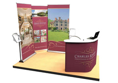 Cost effective and interesting way of creating an exhibition stand using Linking banner kits.