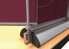 Create a large area for your message at a fraction of the cost using two Premium roller banners with a suspended graphic in between.